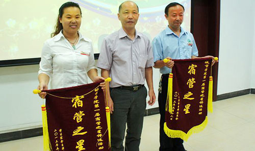 5月16日,由我院学生会自律会举办的第八届宿舍美化大赛决赛暨颁奖在7B301举行。总务处处长翟耀明、总务处副处长陈辉、后勤服务有限公司副总经理柳成荫给获奖的宿舍颁奖。 决赛现场上,气氛紧张,15组参赛者经过了初赛的