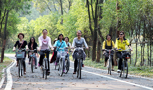 3月8日妇女节,院工会组织青年女教工骑车畅游佛灵湖。 下午3时, 20多名女教工从学院正门出发,前往佛灵湖。沿湖清新的空气、翠绿的植物,尤其是黄澄澄的油菜花,深深地吸引女教职工们驻足观赏。她们不时停下脚步拍照留念,留