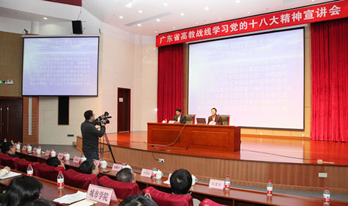 12月18日下午,我院组织教职工到东莞理工学院松山湖校区参加广东省高教战线学习党的十八大精神宣讲会。省高教战线学习党的十八大精神宣讲团成员、广东工业大学政法学院院长谢迪斌教授作了题为“关键时期的重要大会”的宣讲报告。