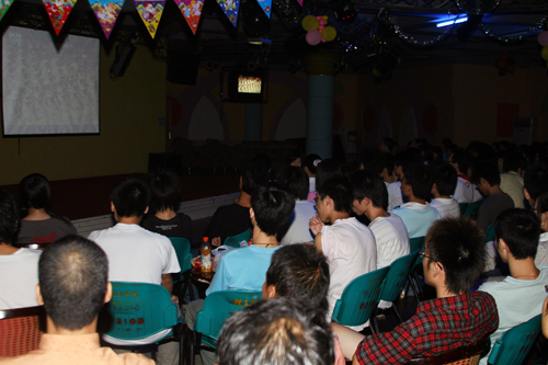 8月8日晚,学院大学生活动中心卡拉OK厅又一次热闹起来。近400名留校大学生齐聚一堂,在这里收看奥运会开幕式电视实况直播。 喜庆欢快的氛围,精彩完美的画面,多种时尚元素,深深感动了大学生们,大家时而欢呼雀跃,时而鼓掌祝