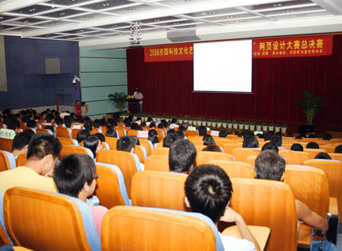 一年一度的网页设计大赛于5月29日落下帷幕。当晚,进入决赛的作品在学术报告厅一一展示,呈现出百花齐放的景象。 院党委朱志德书记,朱冰副书记,院督学林世俊教授,计信系党总支副书记葛卫清博士,学生处副处长、院团委书记丘永