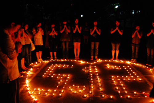 烛光映爱心 祝福传灾区