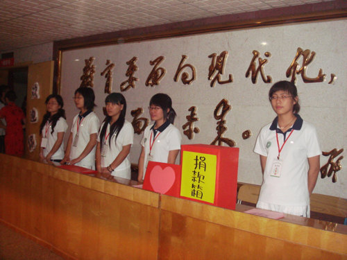 5月16日,计信系在实验楼514室开展募捐活动,为汶川的遇难者默哀。在募捐现场,同学们发扬“一方有难、八方支援”的传统美德和无私奉献精神,慷慨解囊。伴随《爱的奉献》的歌声,各班学生纷纷把满载爱心和祝福的赈灾款投进募捐箱