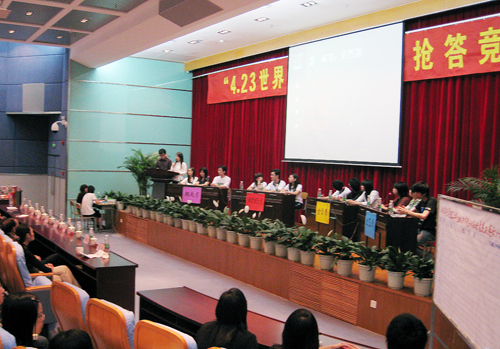 东莞的四月又是读书的好时节。4月28日,由院团委、图书信息中心主办的“4.23世界读书日”知识竞赛在学院学术报告厅举行决赛。 院党委副书记朱冰、图书信息中心主任钟兴恭教授、金贸系主任米双红教授、机电系主任黄健求教授、财经