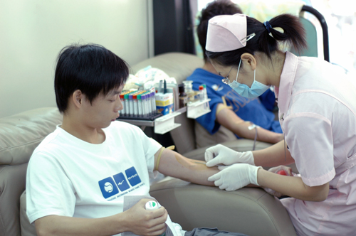 4月19日,计算机与信息科学系团总支学生会联合东莞市中心血站,在饭堂前举行“城院骄子情系08,血浓于水爱无涯”无偿献血活动。 活动进行时虽然细雨绵绵,但师生们献血热情依然高涨,活动持续一直到下午2点才结束,共有260多人参与