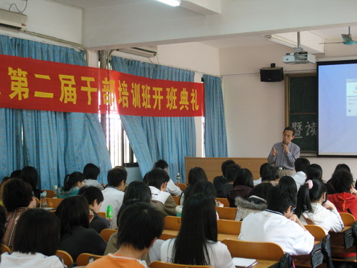 3月6日,管理系第二届干部培训班在1311课室举行开班典礼。 管理系主任罗余才教授,党支部书记徐中和教授,党支部副书记吴春庚老师,辅导员吴雪梅、卢淑芳老师,管理系团总支、学生会干部,06、07级各班班长和团支书参加了培训。 举