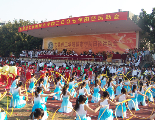 副院长程发良教授向太阳神饮用水有限公司赠送锦旗 为期两天的城市学院2007年田径运动会12月1日胜利闭幕。下午5时,运动会在田径场举行了隆重的闭幕式。出席闭幕式的领导和嘉宾有:东莞理工学院副院长、城市学院院长安少华教授
