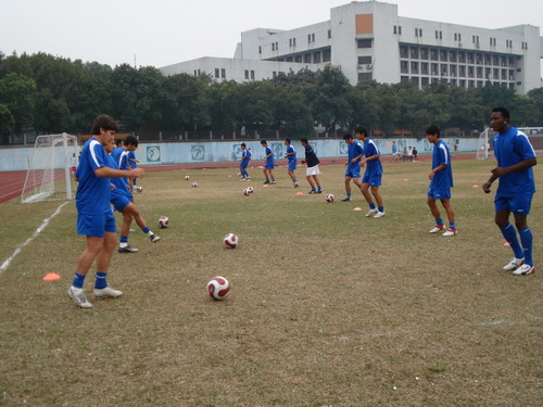 香港联华红牛足球队与我院学生切磋球艺