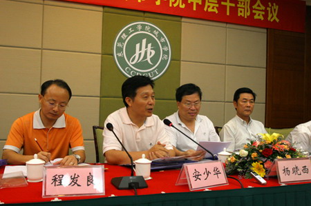 “学院实现了跨越式发展,基本达到了‘三年打基础、扩规模’的奋斗目标。从本年度开始,学院的工作要逐步转移到‘上水平、创特色’的重心上来”。在10月21日学院召开的中层干部会议上,与会人员围绕这一主题,畅谈成绩,寻找
