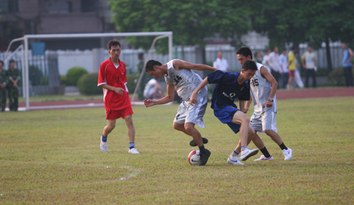 训练场上展英姿,绿茵场里又争雄。9月21日下午,2006级新生与军训教官们在我院田径场进行了一场足球友谊赛,最终教官队以5:4取胜。