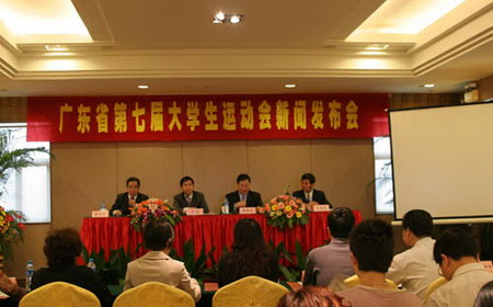 2006年4月21日上午,广东省第七届大学生运动会新闻发布会在东莞市会展国际酒店召开,出席本次发布会的领导有“大运会”东莞筹委会副主任、市委常委、宣传部长江凌同志,“大运会”东莞筹委会副主任、东莞理工学院院长杨晓西教授以