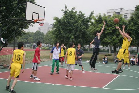 图为财经系和计算机与信息科学系的比赛进行的如火如荼 3月7日下午,学生篮球场人头涌动,由我院学生会体育部组织的学生篮球友谊赛拉开了帷幕。 首先亮相进行比赛的是财经系男子篮球队和计算机与信息科学系男子篮球队。 比赛中两队