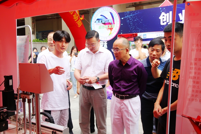 4月11日下午,第二届“双创”活动周暨大学生创业孵化基地成立两周年成果展开幕仪式在秋枫广场举行。活动由东莞市人力资源和社会保障局寮步分局和我院联合举办,并获得了东莞市科技企业孵化协会、东莞市蚁巢科技企业孵化器有限公司的大力支持。