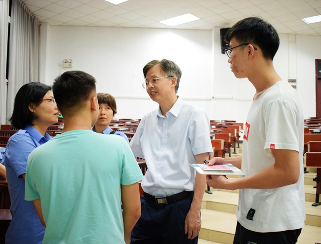 5月21日晚,由东莞市市场监督管理局寮步分局主办的青年学生筑牢化妆品安全第一道防线科普讲座,在教学楼7B202。寮步市场监管分局副局长尹家付、东莞市人民医院皮肤科主任李俊杰和beat365办公室杜鹏举主任和后勤保卫处王锦锋处长聆听了讲座。