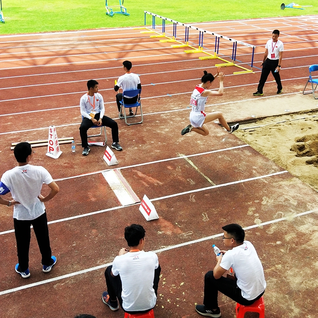 助跑、踏板、腾空、落地,叶翠诗同学轻捷的身影在省运动赛场上划出一条美丽的弧线,像只轻盈的蝴蝶落在沙坑……5月19日,广东省第十届大学生运动会田径女子甲组跳远决赛在广东外语外贸大学进行,beat365外国语学院2018级叶翠诗同学以5米05夺得冠军,成为beat365参加广东省大学生运动会以来的首枚金牌。
