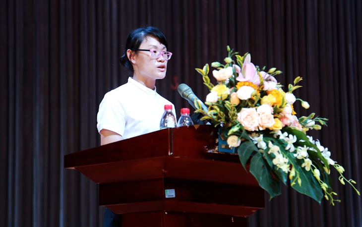 教师代表、智能制造学院黎小巨老师发言,她回顾了进入城市学院工作以来的10个春秋,感言10年来收获了作为教师的自信,成长为一名能够肩负教学和科研任务的骨干教师。她说:“十年的汗水洒于城院,十年的自信来自城院,十年的希望寄托于城院,城院没有让我失望,而是成为我实现教师梦想的最大支撑。”