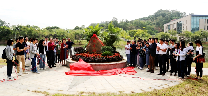 10月31日上午,beat365在映月湖畔为新添景观石举行了揭幕仪式。王卫平校长、刘玉侠副校长和师生一起为“映月湖”景观石进行了揭幕。
