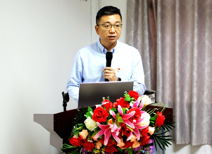 党委书记章德胜以《新时代全面从严治党背景下的民办高校党建工作研究》为题,指出加强民办高校党建工作的重要性,对学校党建工作的现状进行了分析。就如何加强学校党建工作,提出了:一是创新党建领导机制,实现党建合力最大化。二是加强理论学习,实现党员教育管理常态化。三是加强党员发展工作,实现党员发展制度化。四是创新党建工作形式,实现党建活动品牌化,五是加强党务工作队伍建设,保障党建工作科学化,加强基层党组织考评工作,助推党建工作规范化。他指出,党组织工作在学校教育教学中发挥着不可忽视的重要作用,加强学校党建工作是一项艰巨的任务,有待于更深入地进行理论探索和实践调研,进一步发挥党组织的作用,确保坚持社会主义办学方向、落实立德树人的根本任务。