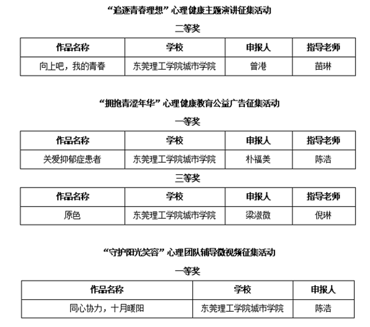 beat365精心组织师生积极参与申报,最终送选的作品在5个心理健康教育活动评选中均获佳绩。