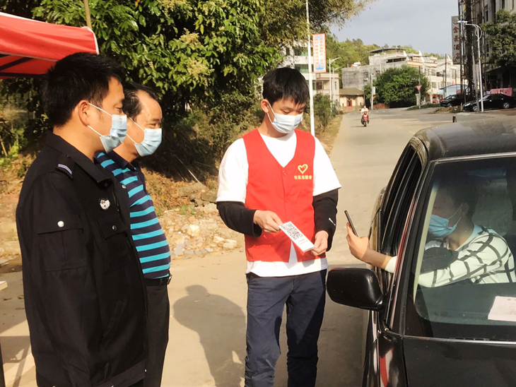 自疫情爆发后,郑桐彬便在紫金县凤安镇居委会做志愿服务工作,主要负责对过往车辆进行外来人员信息登记、测量体温,以及记录车辆始发地和目的地。