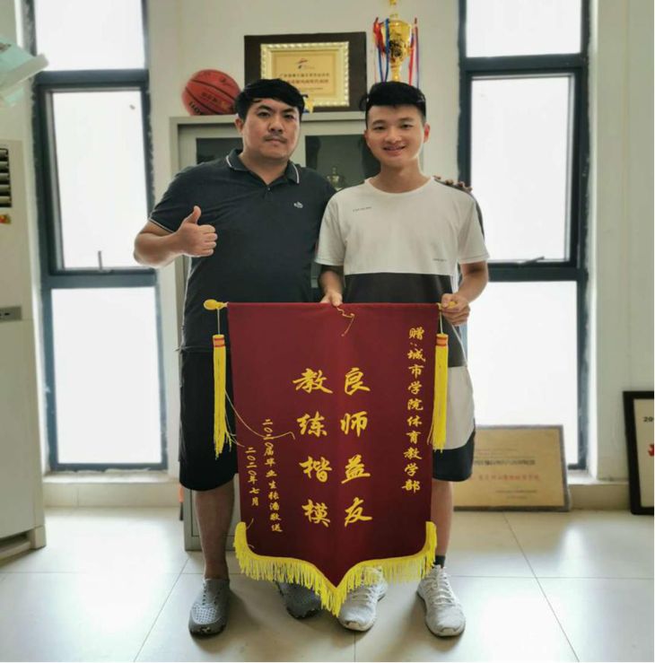 7月2日张潘同学返回学院,为体育教学部领导和老师送来致谢锦旗,感谢四年来体育教学部领导的悉心关照,教练员的精心栽培。