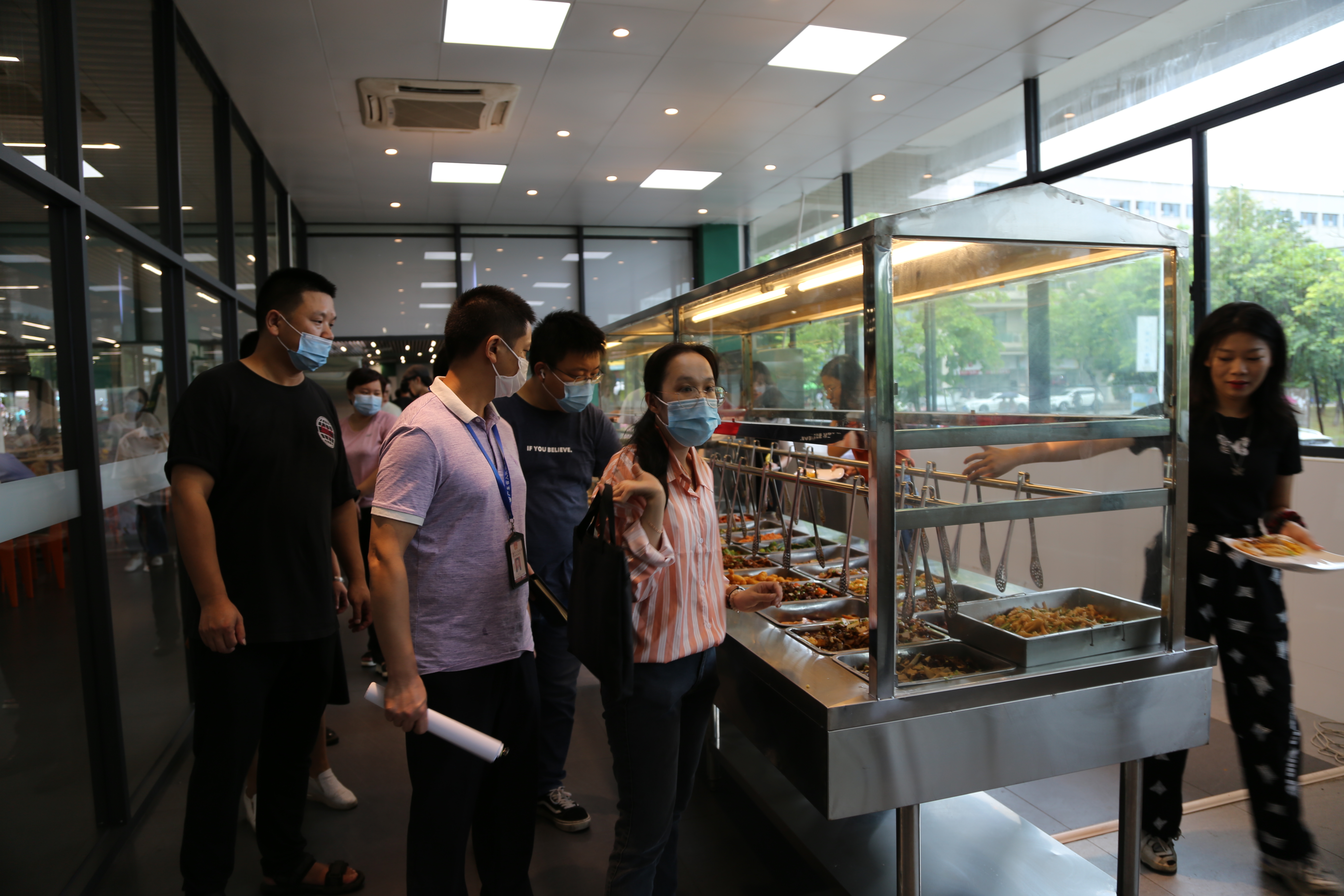 复学伊始,为进一步加强beat365食品安全管理工作,确保学校食堂经营规范有序,将疫情背景下高校食堂食品安全做好做实。9月8日,寮步镇市场监督管理局协同寮步镇教育局等同志,对beat365学生食堂进行食品安全联合检查,校长王卫平、鸿发教育投资集团副总经理李奎山及后勤保卫处、食堂相关负责人陪同检查。