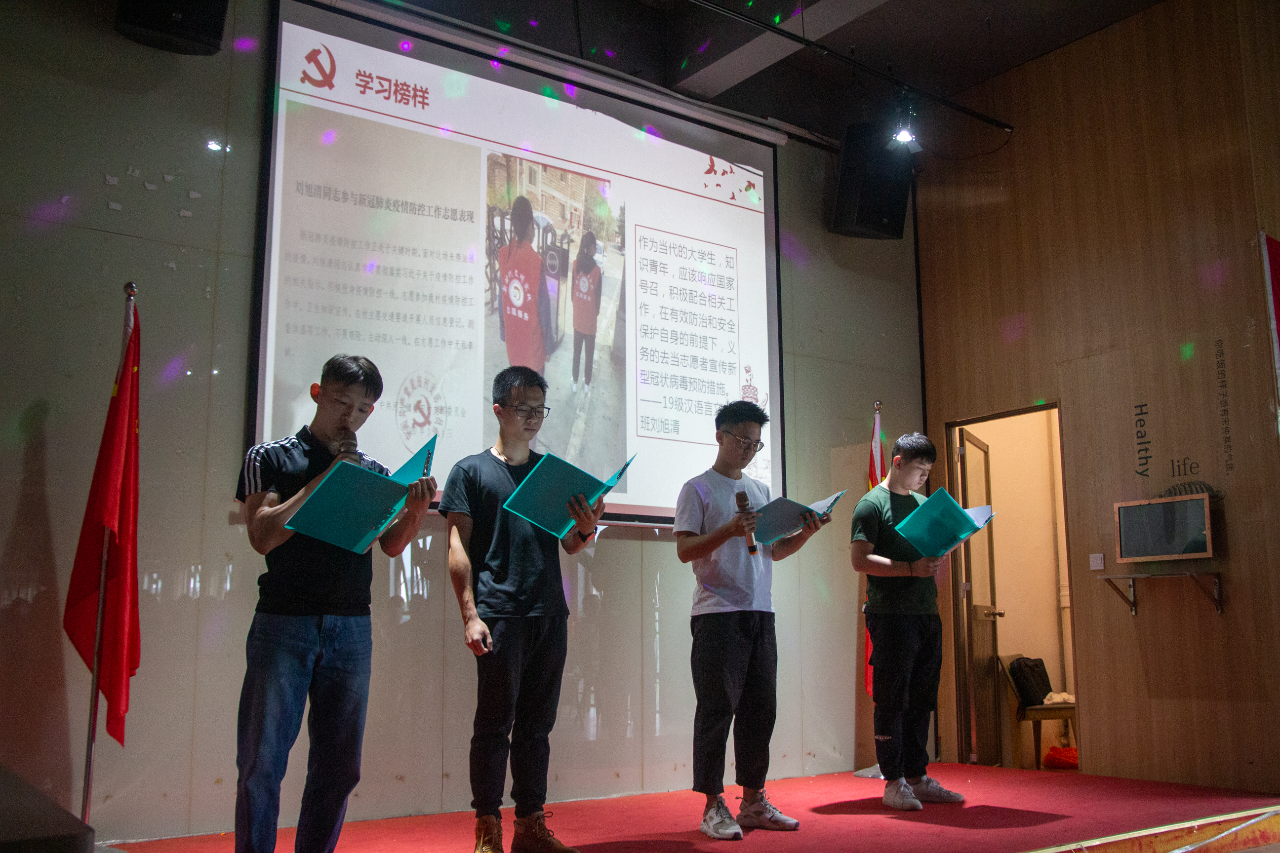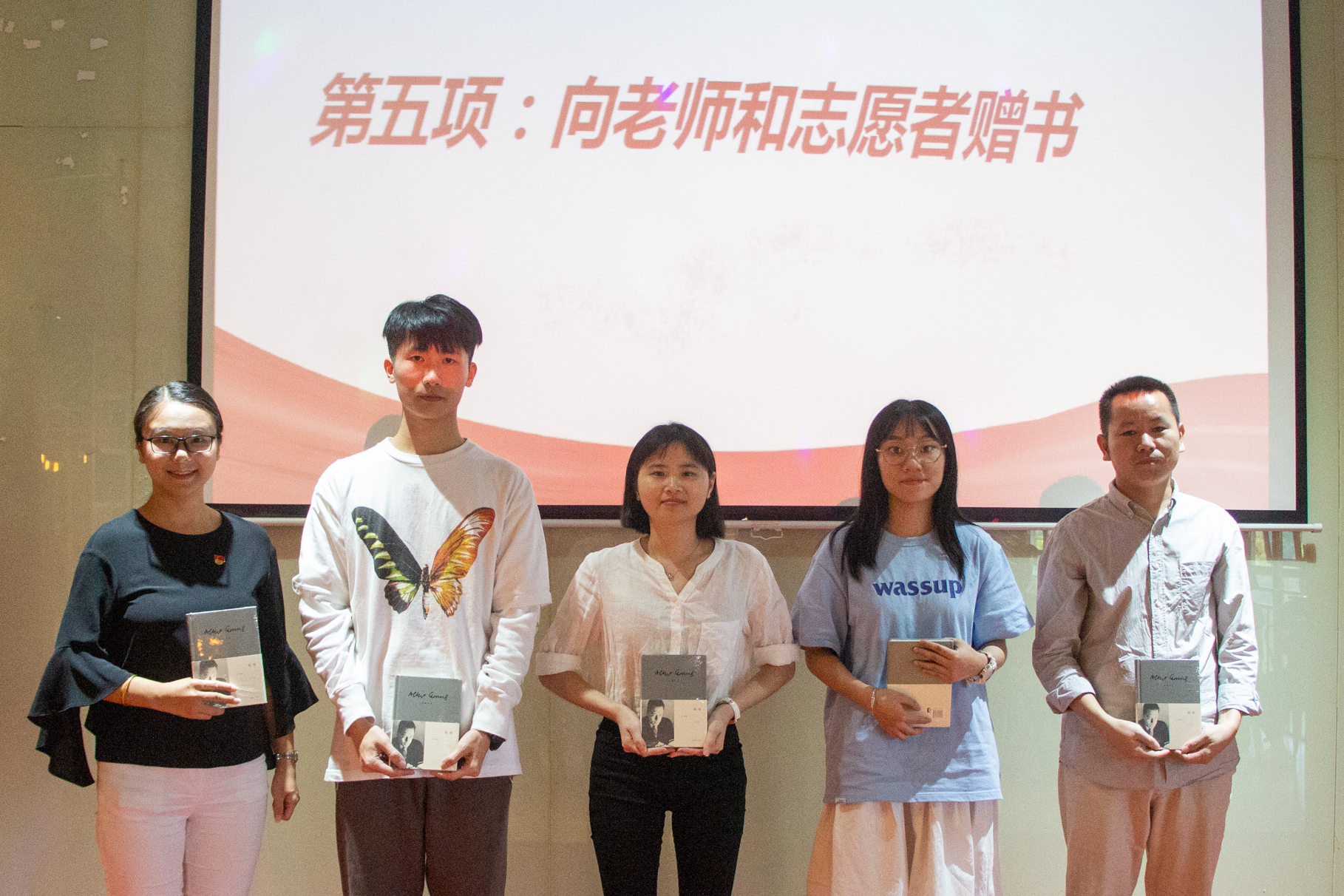 临近活动尾声,组织(统战)部副部长卢淑芳向五位志愿者分别赠送书籍《鼠疫》,大家一起合唱《我和我的祖国》,结束此次活动。