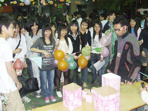 场内共设置了11个游戏摊点供全院师生一起游玩,参与者可以凭奖券获得各种精美礼品,很多项目前都排着长长的队伍,场内笑声、欢呼声不断。计信系主任牛熠和党总支书记廉玉忠也前来“游园”,并将自己的奖券送给了两个女生,祝她们节日快乐。牛主任满面笑容地说:“此次活动的创意非常好,不仅展现了计信系的特色,也让计信系的同学们过上了一个非常开心的节日。”