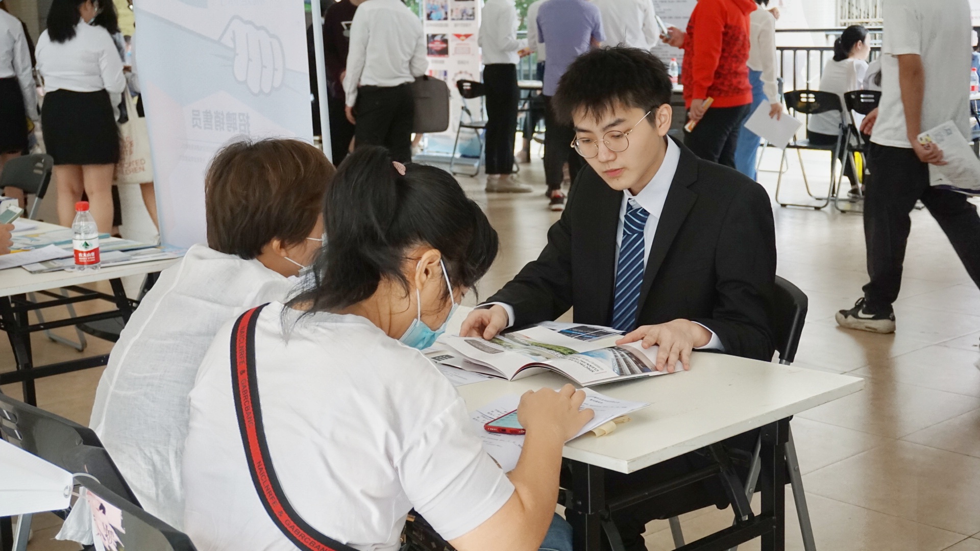 现场,beat365多名领导亲临现场指导工作,保安和志愿者在会场出入口维持秩序,招聘人员热情地给应聘的学生发招聘单,求贤若渴。各企业将参展信息挂在墙上,蔚为大观。毕业生们身着正装,捧着精心准备的简历,充满自信地与企业招聘人员交流,参加面试。热门企业的招聘摊前更是排起了长队,招聘现场人山人海却秩序井然。
