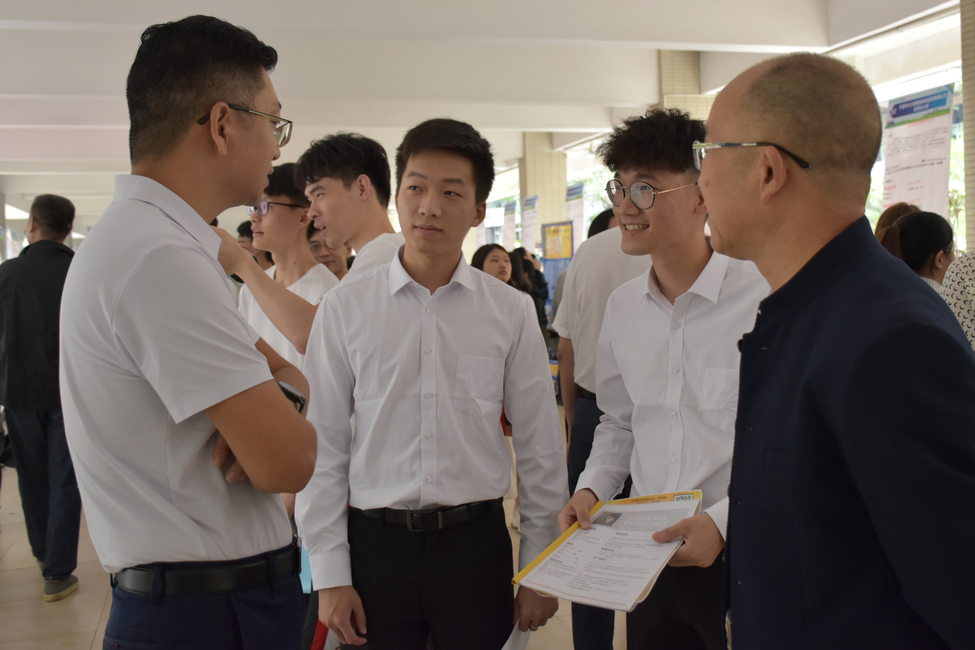 东莞市人力资源服务中心副主任吴德阳、东莞市人力资源和社会保障局寮步分局局长刘俊桢、副局长钟坚玉,学校领导以及就业相关负责人来到现场积极询问了毕业生的就业意向和准备情况,并详细了解了用人单位的招聘情况和人才需求。