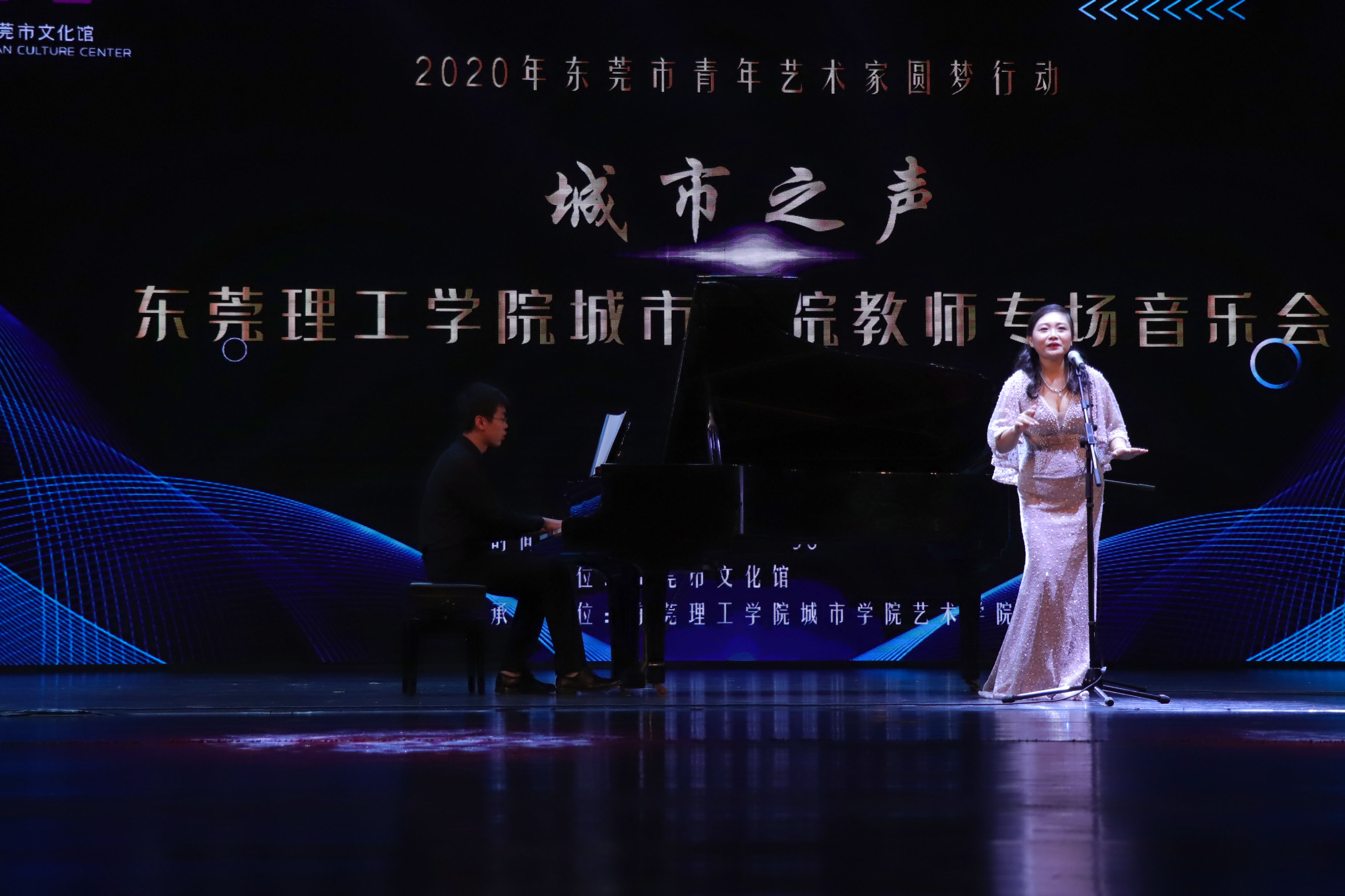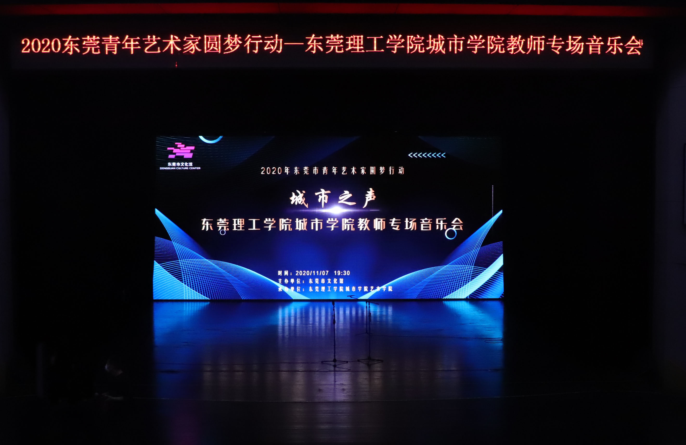 11月7日,2020年东莞市青年艺术家圆梦行动“城市之声-东莞理工学院城市学院教室专场音乐会”在东莞市文化馆星剧场隆重举行。东莞理工学院城市学院20名音乐表演教师联袂献艺,给东莞市民献上一场视听盛宴。