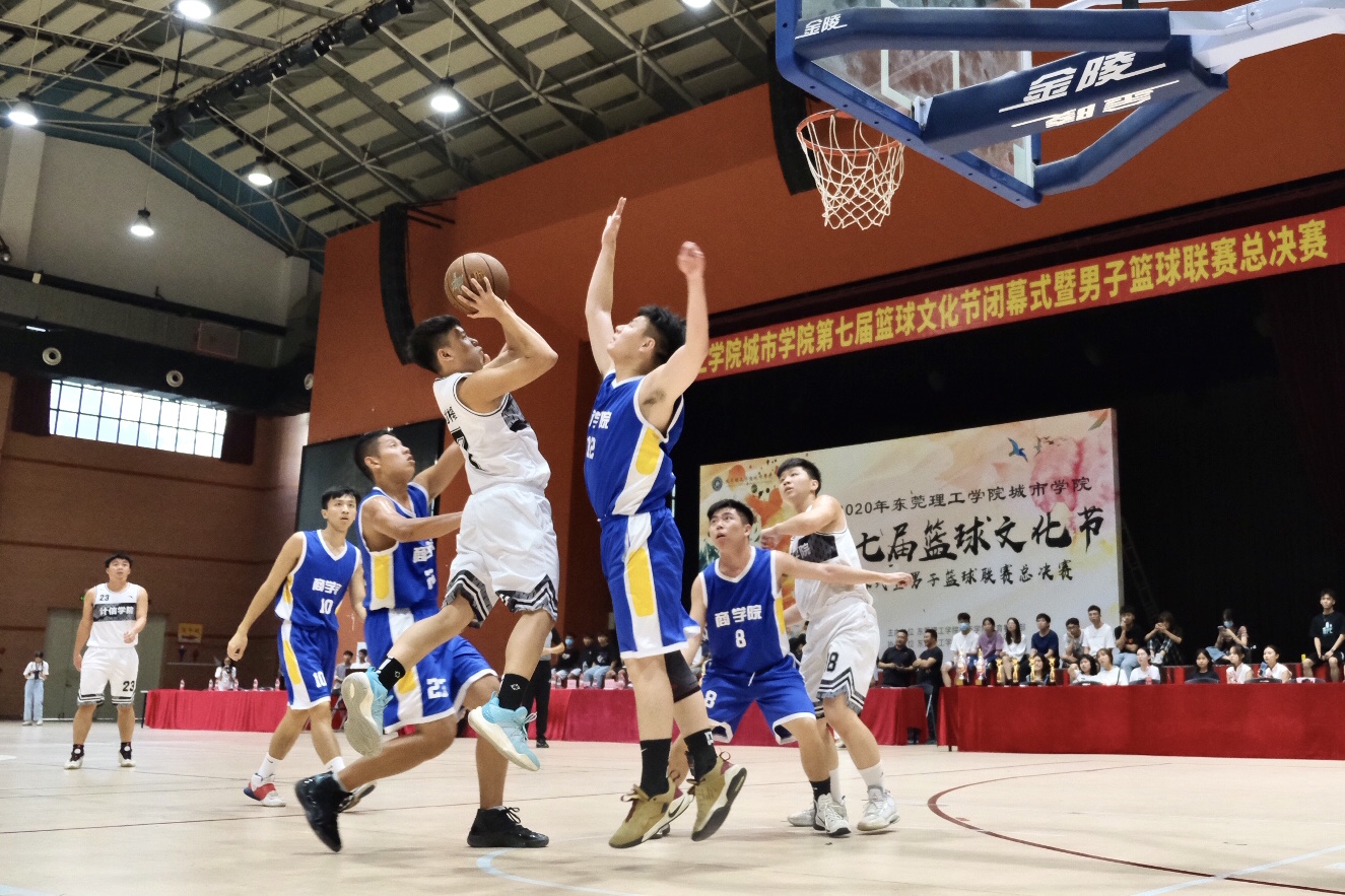 男子篮球联赛总决赛随之展开,商学院和计信学院的运动员上场角逐。队员们配合十分默契。抢、传、投一气呵成,现场气氛热烈,高潮迭起,赛场的欢呼声一浪高过一浪。前半场计信学院保持领先状态,但在最后关头,商学院以一计三分球反超计信,在第四节落后近十分的情况下实现了逆风翻盘,以79:78的比分战胜计信学院,取得本次男子篮球联赛决赛的总冠军。