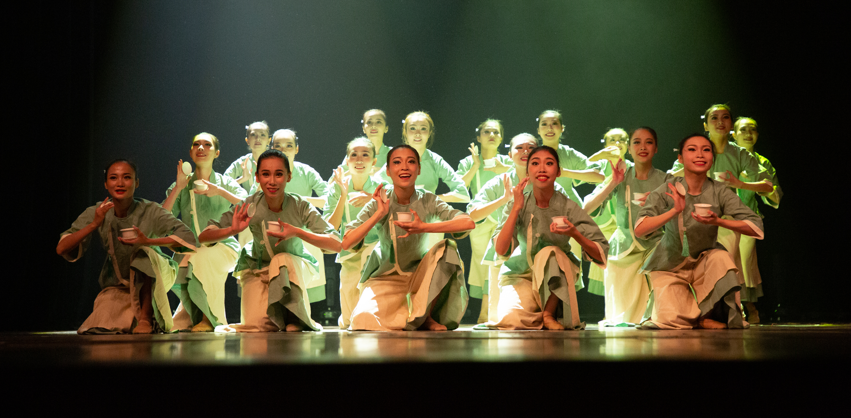 节目分三大类,课堂“教学展示部分”包括了“藏族”“蒙族”“傣族”和“朝鲜族”四种民族舞蹈。“学习作品”部分则由林桑瑜、刘艳宇、欧洲波带来的“独舞展示”,“草龙舞秋枫”“一袭龙进乡”,双人舞《触》,三人舞”《大旱云霓》,《鸡毛信》《醉春风》等作品,而最精彩的是由编导全体同学带来的原创舞剧《天书》,同学们用肢体的语言阐释了华夏五千年从甲骨文到诗词歌赋,从一撇一捺到科幻数码,历史在演变,中华的文化在传承中不断升华,给大家献上一场美轮美奂缤纷多彩的视觉与文化的盛宴!