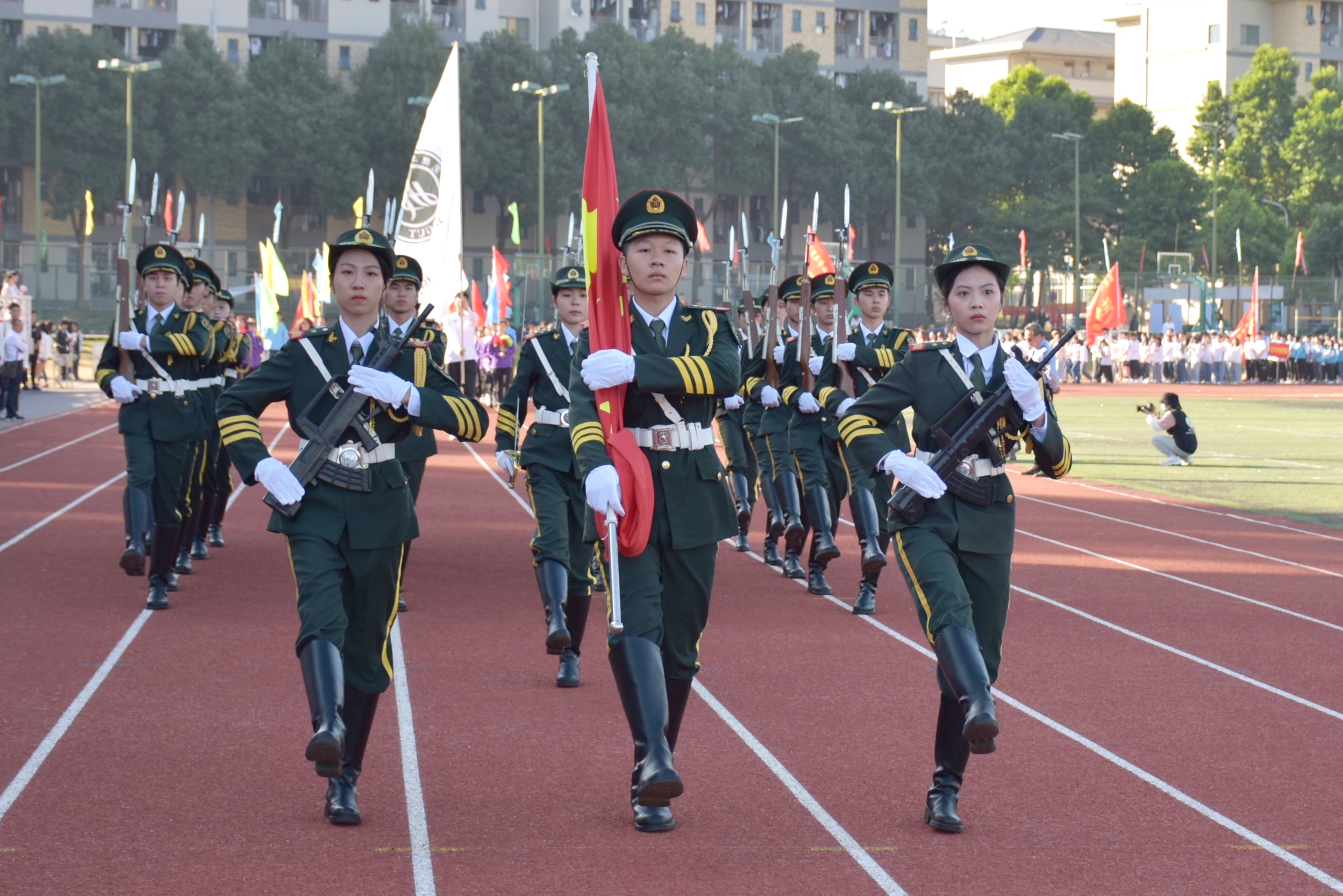 beat365国旗护卫队以“一日护卫国旗,终身无上荣光”为动力,用汗水铸就了军人威武阳刚的气质,用奋斗的青春践行爱国主义精神,,以饱满的精神,整齐划一的步伐,清晰有力的口号,标准规范的动作,荣获第三届广东省学校国旗护卫队交流展示活动一等奖,第二届广东省国旗护卫队交流展示活动二等奖,队员们用行动继承发扬学校“学而知不足”的校训,将beat365国旗护卫队严谨细致、团结进取、勇于担当、甘于奉献的精神传承下去。