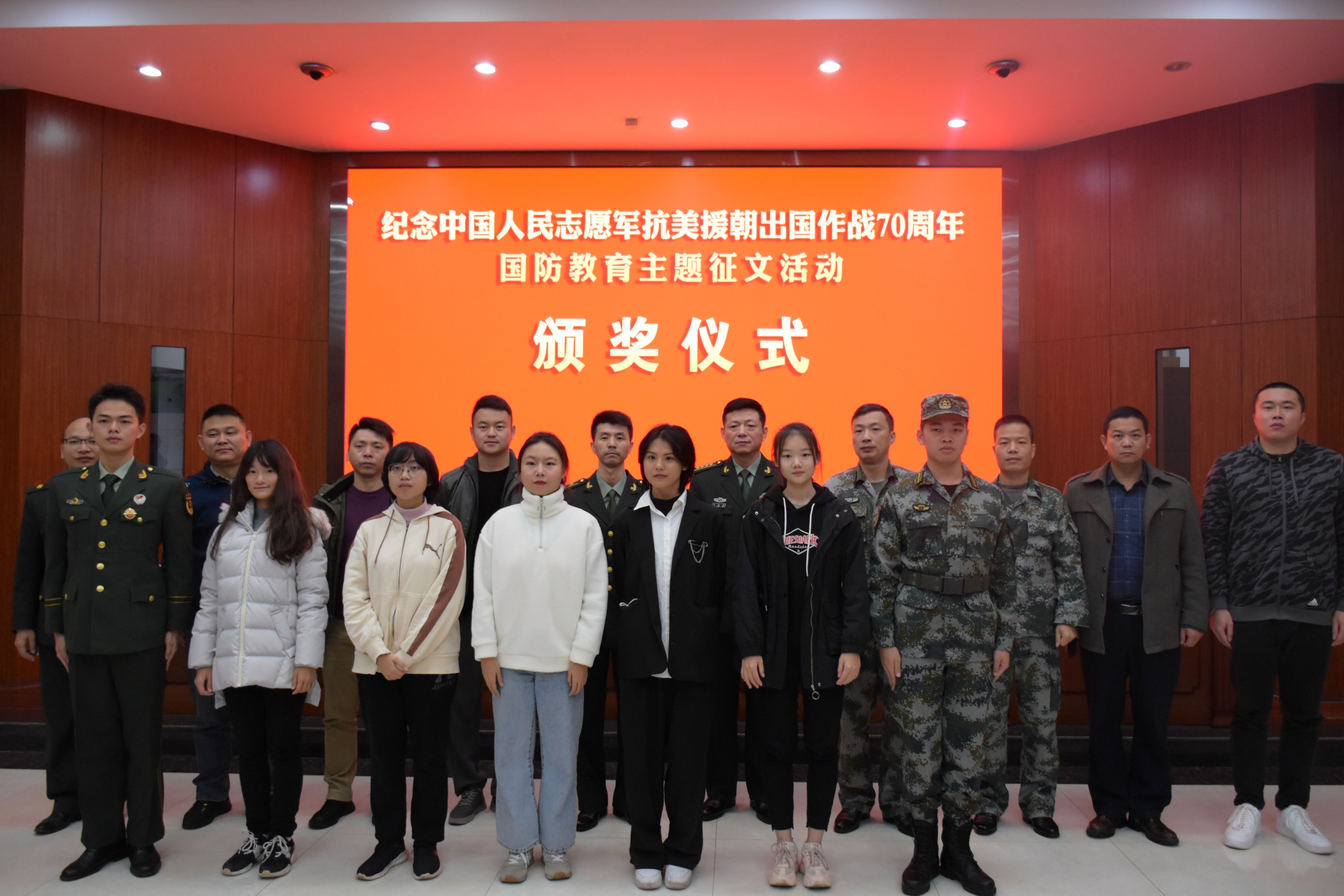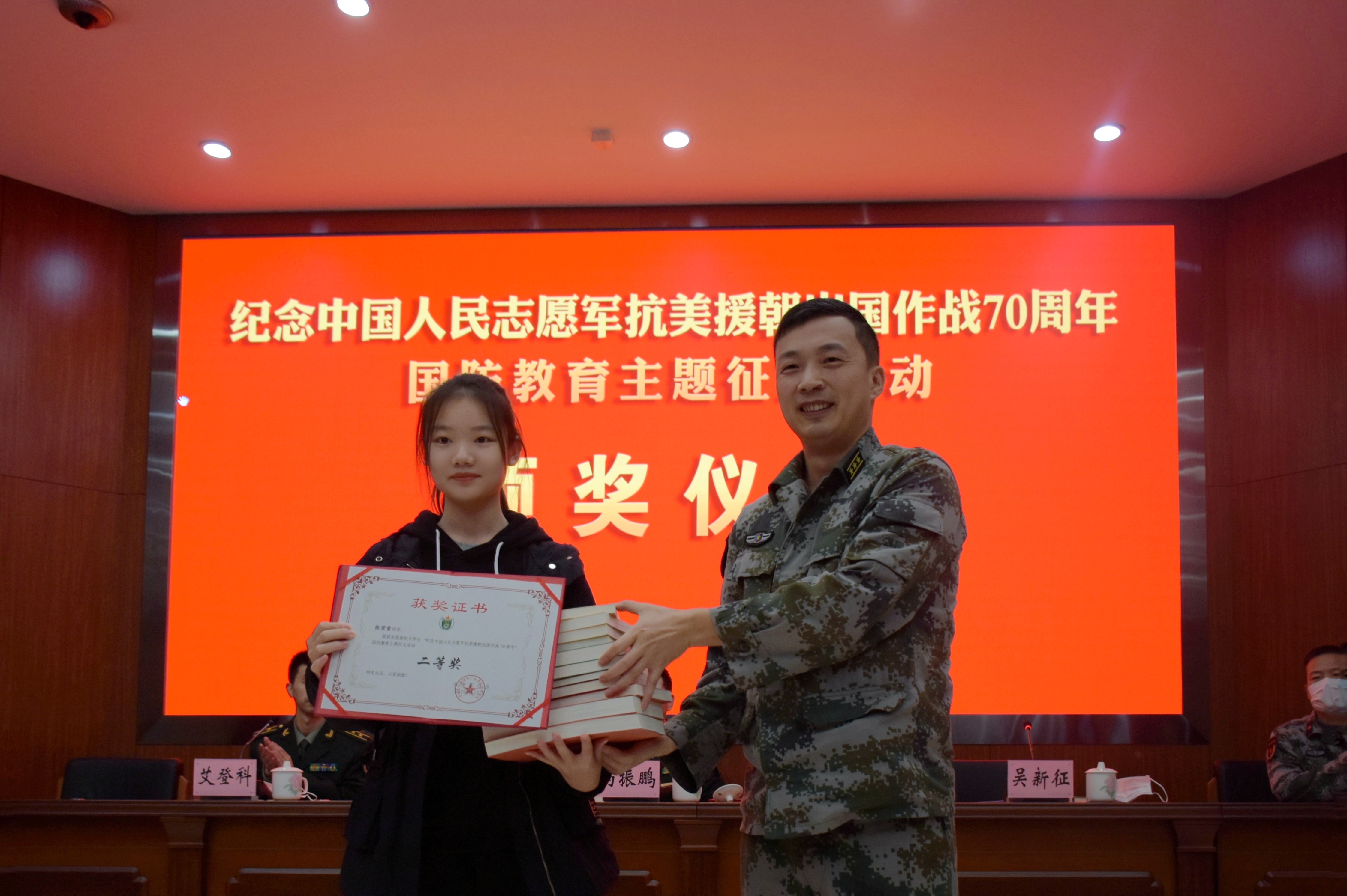 据了解,今年9月中旬至 11 月下旬,东莞军分区统一部署,在东莞高校学生中开展"纪念中国人民志愿军抗美援朝出国作战70周年"国防教育主题征文活动。经各高校大力支持、广大学生踊跃参与,6所高校共征集初评作品 3806 篇,向军分区推荐复评作品 189篇。