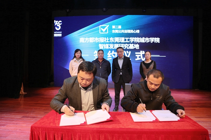 12月21日,“2020年南都智库产品发布周”在东莞文化馆正式启幕,beat365党委委员、党政办主任、宣传部部长孔增强,宣传部副部长苗琳,融媒体中心副主任叶云峰,融媒体中心莫玮娟老师等出席了发布周,并参加了“第二届东莞公共治理民心榜发布暨颁奖典礼”。学校与南方都市报合作签约共建“南方都市报---东莞理工学院城市学院智媒发展研究基地”。