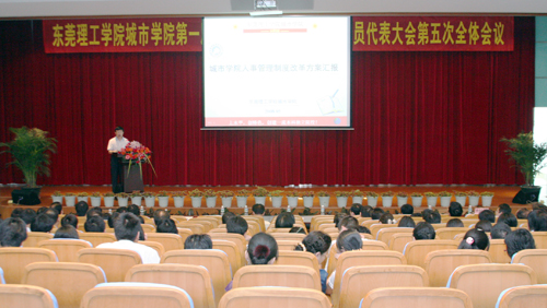 5月8日,东莞理工学院城市学院第一届教职工代表大会暨工会会员代表大会在学术报告厅举行第五次全体会议。