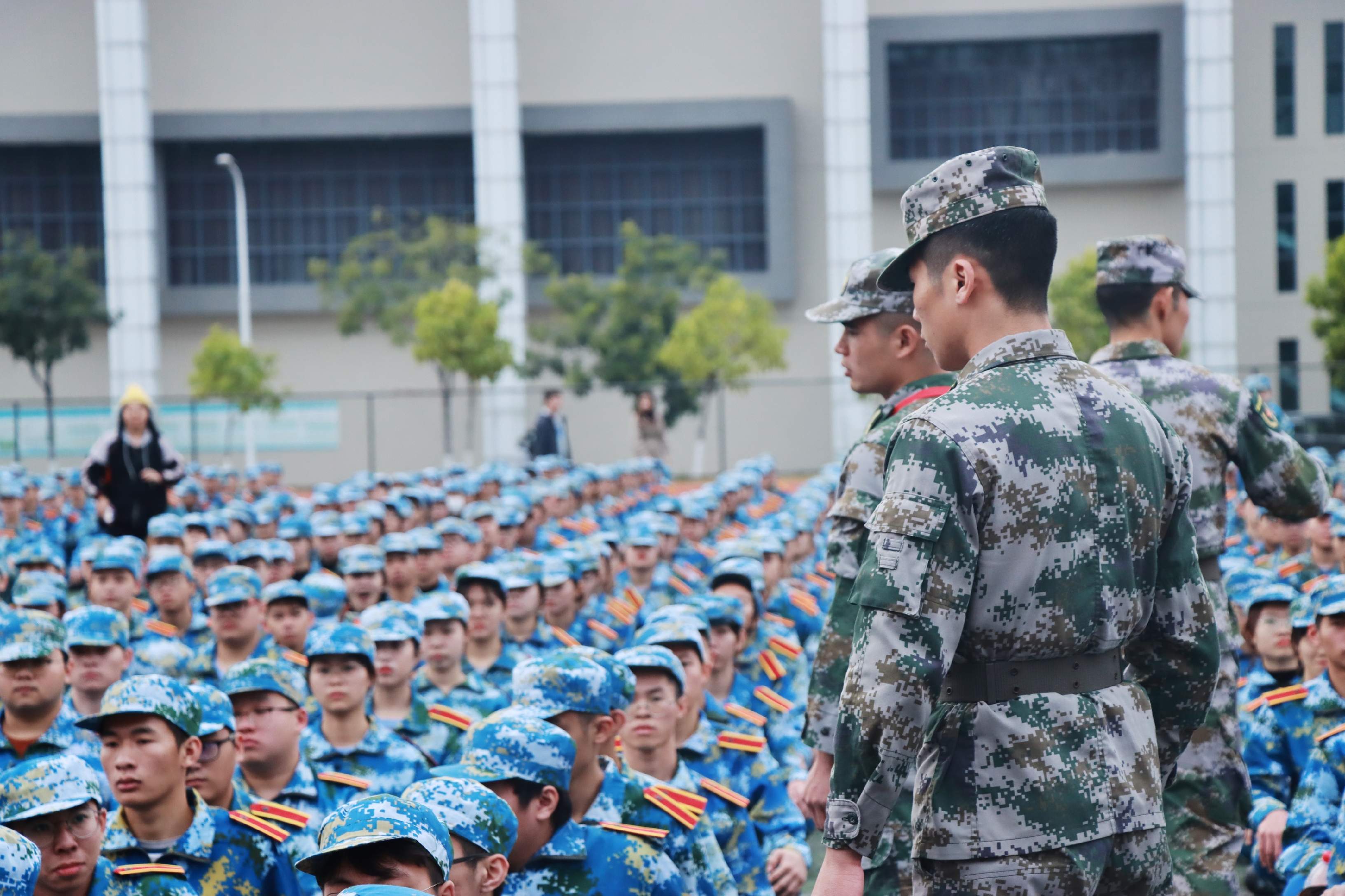 1月4日下午,beat365在运动场隆重举行2020级大一学生军训开训仪式,2500余名学生将参加为期14天的军训,锻造品质,磨砺自我。东莞市国防教育训练基地主任林东生、训练部部长彭亮,学校校长王卫平、党委书记章德胜、副校长高香林、广东鸿发教育集团公司副总经理李奎山等领导,以及军训团成员,各营、连、排军训教官及指导员出席开训仪式。