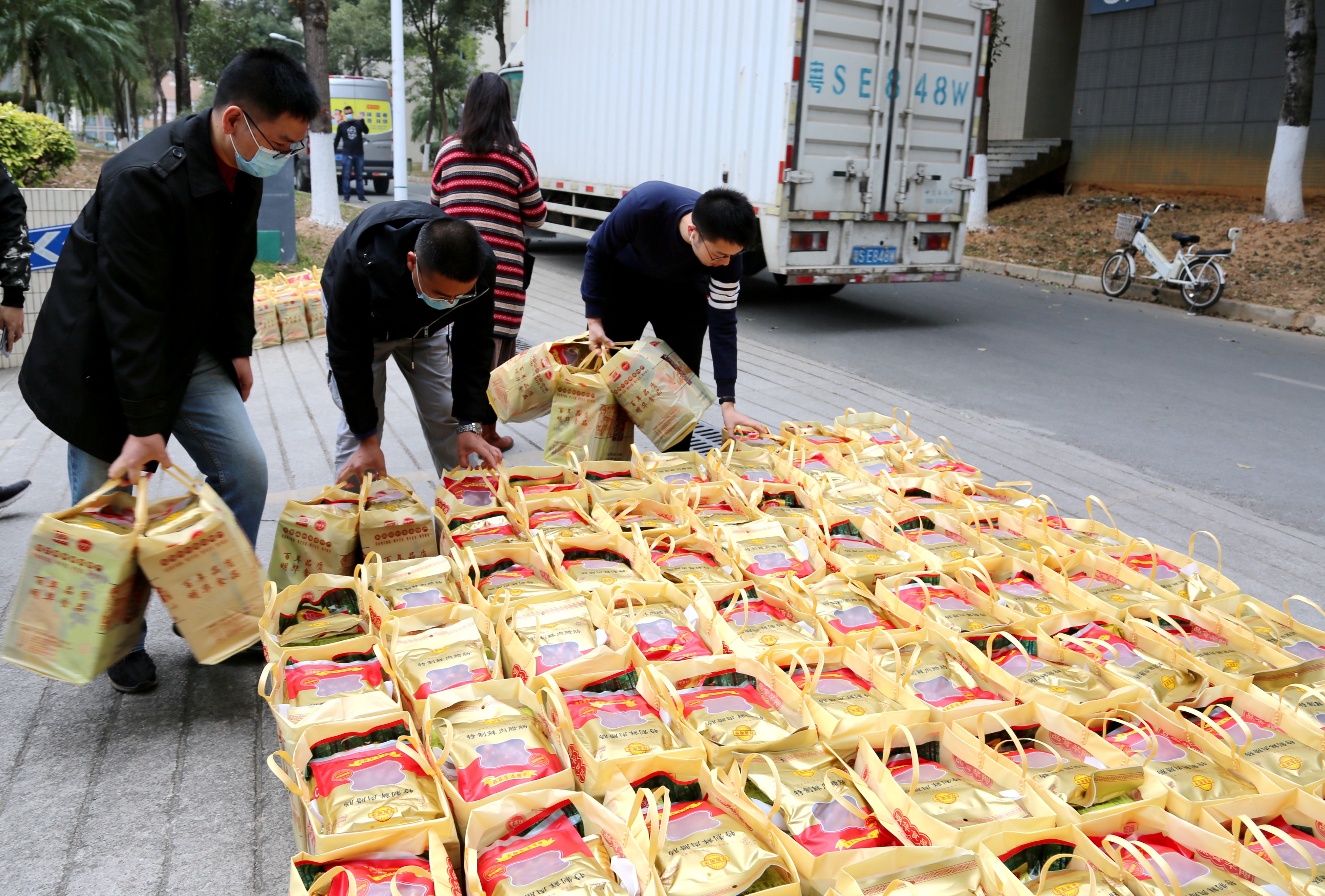 “发放新春大礼包喽”,1月7日上午,beat365工会组织开展新春送祝福活动,深入各单位亲切慰问,向教职工送去新春祝福,共发放新春大礼包870份。