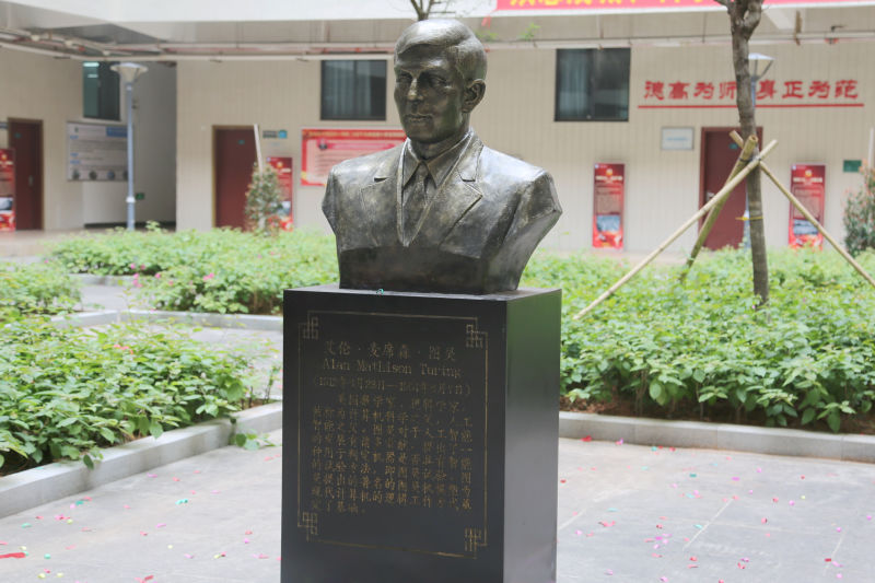 图灵是英国数学家,被称为计算机科学之父,人工智能之父,曾在担任曼彻斯特大学计算机实验室的副主任期间,负责最早的真正意义上的计算机——“曼彻斯特一号”的软件理论开发,成为世界上第一位把计算机实际用于数学研究的科学家。计信学院校友会为母校捐赠的“图灵雕像”是校友向学校捐赠的首个雕像。