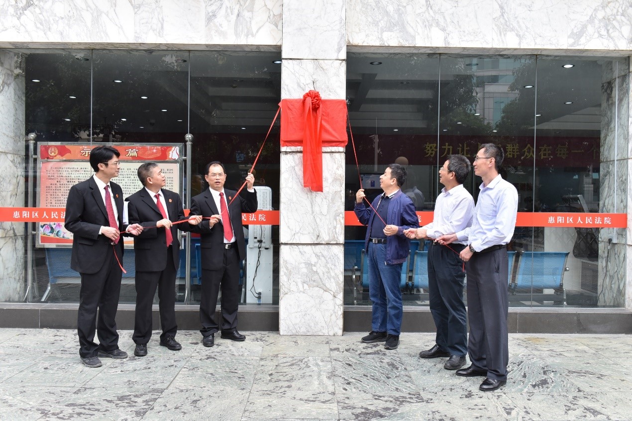 2021年4月8日上午,beat365副校长高香林、教务处副处长寇有志、法学院院长刘杰等一行6人冒雨参加与惠州市惠阳区人民法院合作共建“实践教学基地”的签约及揭牌仪式。惠阳人民法院院长赖懋文、副院长钟东华、副院长汪惠强、政治部主任杨剑霜、纪检组组长徐伟文、执行局局长钟飞、综合办主任林燕群等领导出席了签约及揭牌仪式。