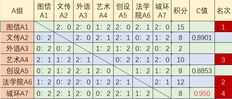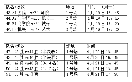 在B组,则是商学院和机关一则在7战中共积14分,商学院以不败一场的战绩位居第一。机关一7战中4场2:0直落,另外两场也仅以1:2惜败,积14分,位居小组第二。机关二和马院则以小组第三、第四名的成绩出线。