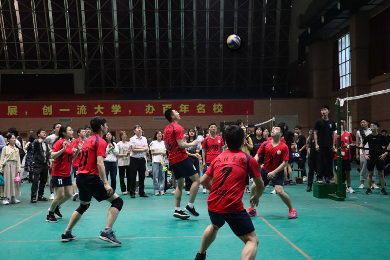 本次气排球联赛采取分组循环和交叉淘汰相结合的赛制,共有来自14个分工会组成的14支代表队参赛,参赛队员近百余人。代表队参赛热情高涨,赛前认真练习发球、接球、扣球的方法和技巧;赛场上,队员全神贯注,精准发球、稳重接球、有力扣球,配合默契。比赛精彩纷呈,高潮迭起,观赛教职工和学生啦啦队不时地为队员们喝彩和鼓掌,气氛紧张又不失温馨。