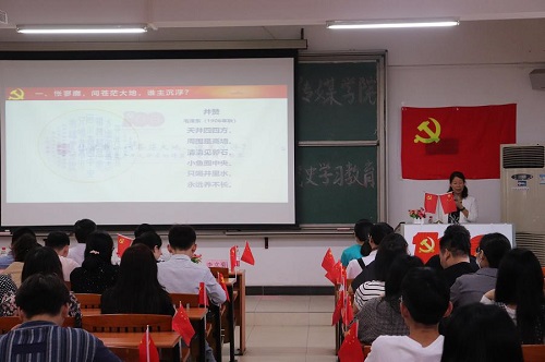 最后,李教授指出要以高度的自觉认真学习百年党史,在传统文化和诗词中传承红色基因,发扬优良传统,汲取精神力量。在学习党史的漫漫路上,要懂得学思结合与知行统一,在党史的学习中传承优秀党员们的精神命脉,弘扬优秀党员们的优秀品质。