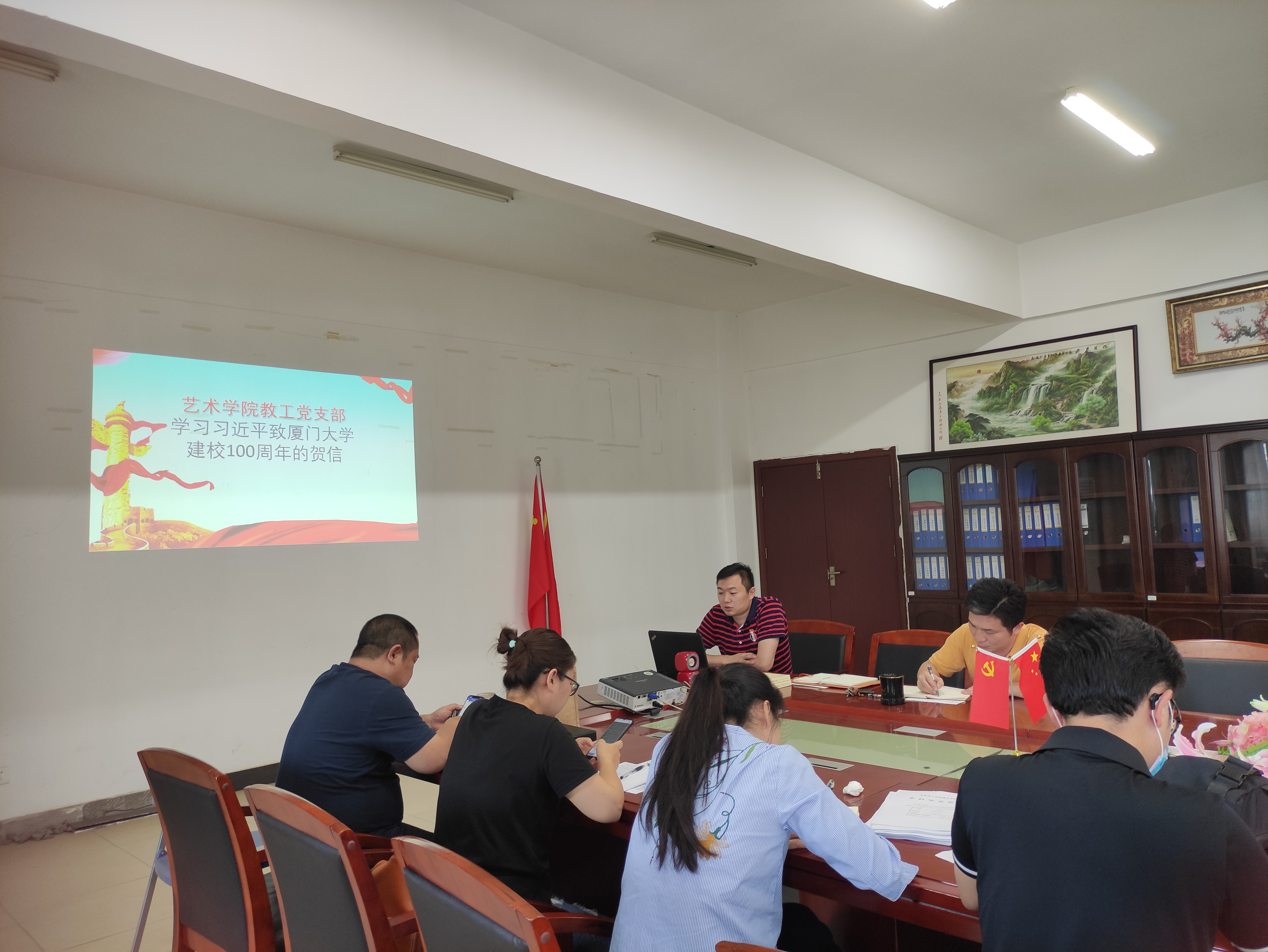 5月6日下午,艺术学院教工党支部在5C419会议室召开了党员大会,集中学习东深供水建设者群体先进事迹和可贵精神讲话。
