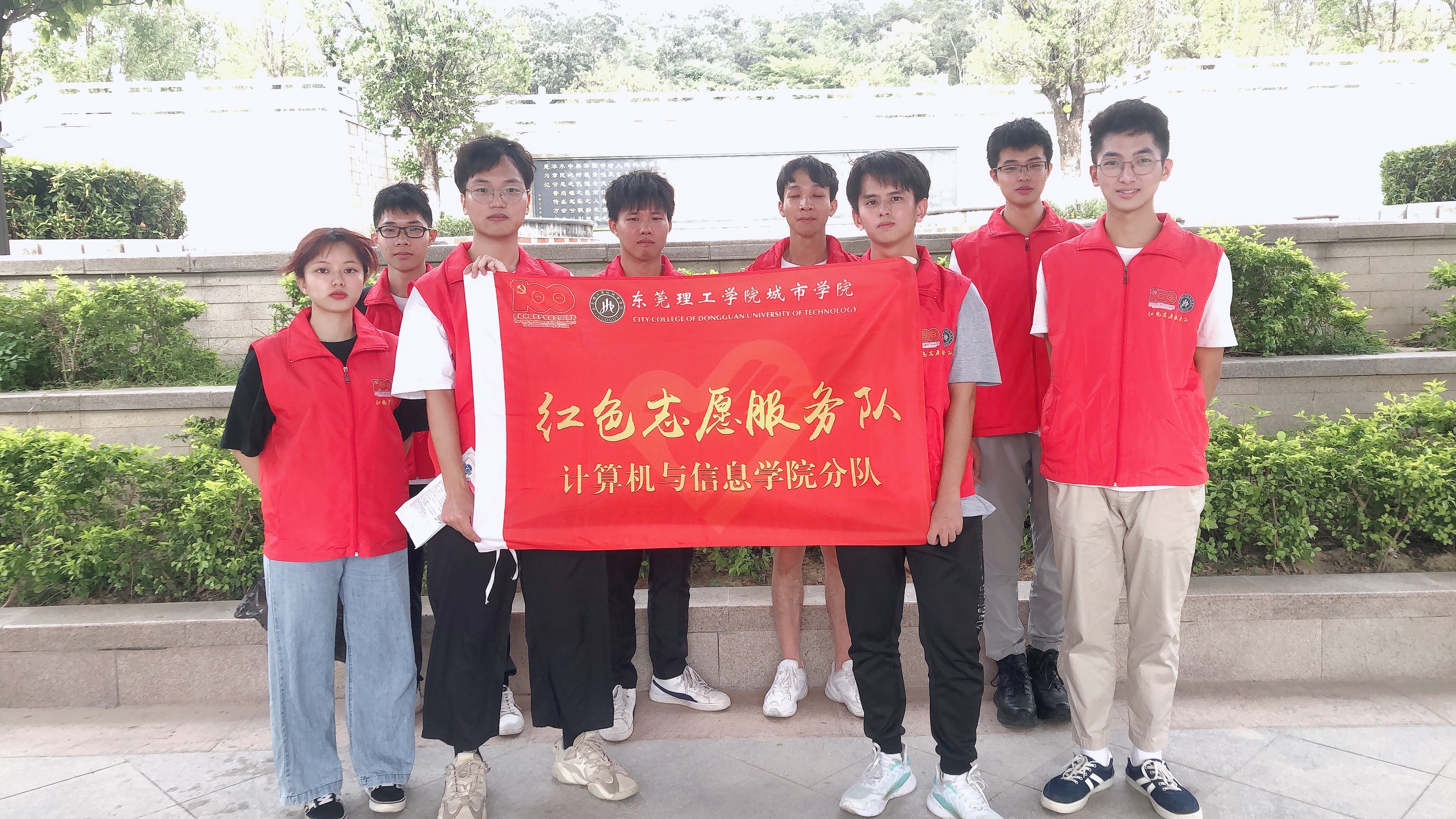 5月9日,商学院分队组织全体志愿者前往东江纵队发源地的东莞人民公园红色教育基地开展“探寻红色文化,传承革命精神”主题的志愿活动,通过免费发放口罩活动、采访游园的群众和参观革命烈士文化博物馆,宣扬红色精神。