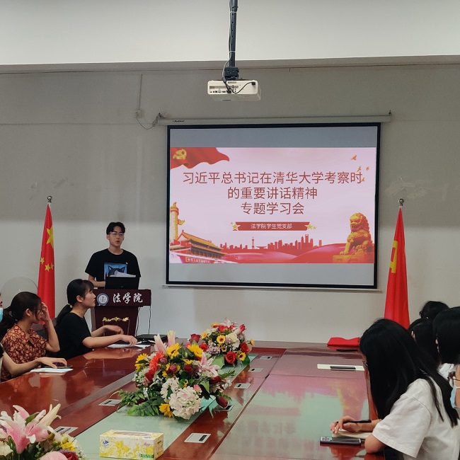 ◆5月7日,法学院党总支学生支部开展习近平总书记在清华大学考察时的重要讲话精神专题学习会