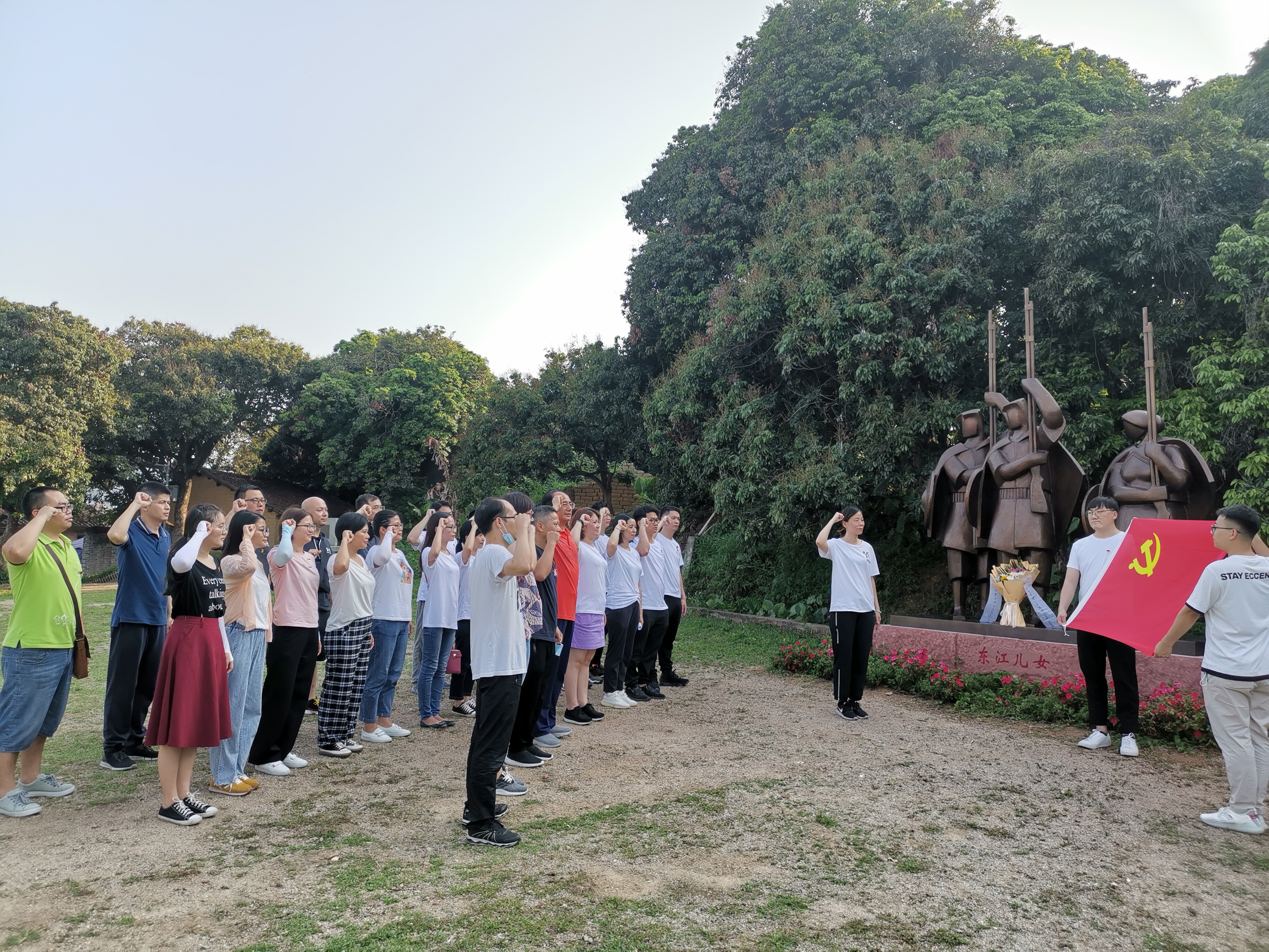 党员们前往长安镇新时代文明实践中心、大岭山镇大王岭村、东纵抗日旧址等地开展活动,向革命先烈敬献花束,重温入党誓词,讲述抗日革命故事,共唱红歌《没有共产党就没有新中国》,“重走红军路”重温革命历史,共吃一顿红军饭,重温红色事迹,缅怀革命先烈,坚定理想信念。