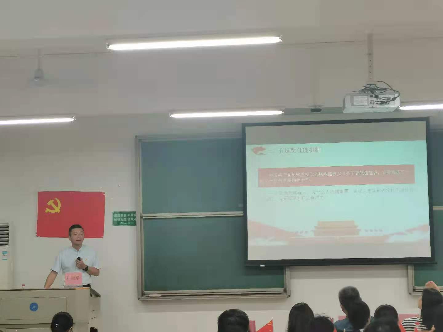 付振岭教授讲述了中国共产党百年辉煌史,总结了中国共产党的革命和改革基本经验,强调每一名共产党人都要高举习近平新时代中国特色社会主义思想伟大旗帜,不忘初心,牢记使命,增强四个意识,坚定四个自信,坚决做到两个维护,为中华儿女谋幸福,为中华民族谋复兴。