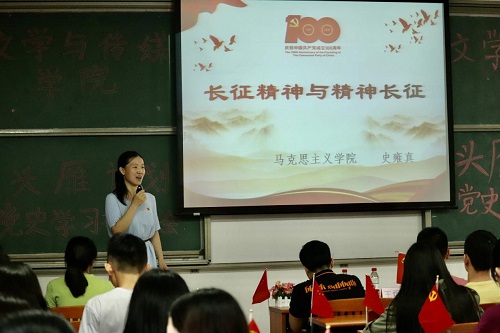 史雍真从“感悟初心”、“永葆初心”两个层面为党员们展现了长征精神的魅力,强调身为共产党员,应当始终坚定共产主义远大理想和中国特色社会主义共同理想,坚持党的指导思想与政治路线,坚持和维护党的领导,弘扬敢于斗争、敢于胜利的长征精神,延续长征精神血脉,坚信正义事业必然胜利,不怕困难,不怕牺牲,敢于创新,艰苦奋斗,为中华民族谋复兴,为中国人民谋幸福。